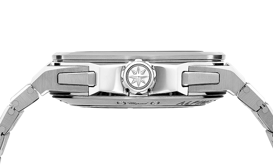 ピッチブラックダイアルの色合いは「山間部の夜の漆黒の闇」を表すものとして採用された。ショパールはこれを「都市化や人工照明がいかにアルプスの自然美を乱してきたかを思い起こさせるもの」だと説明する。