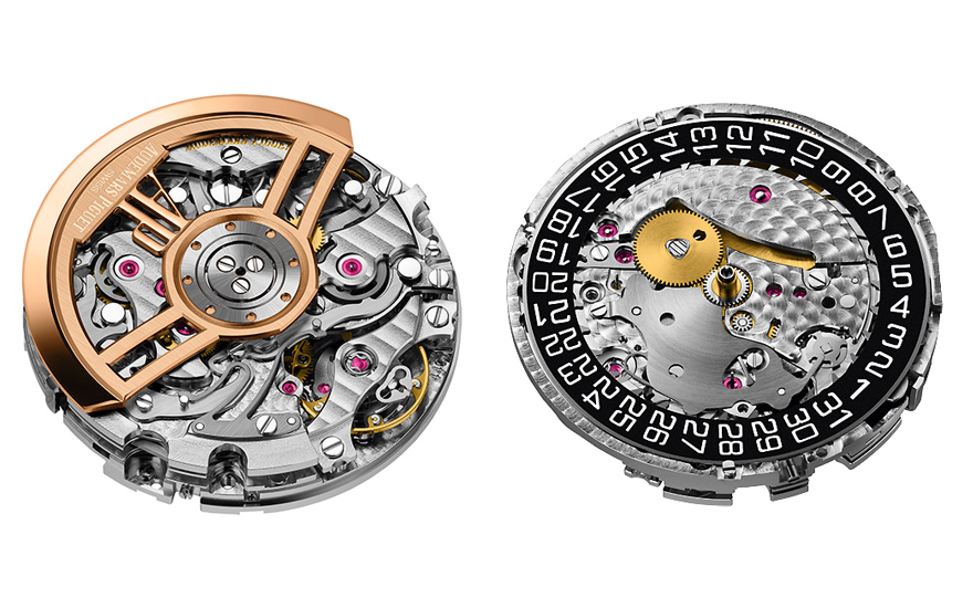 CODE 11.59の開発は、12年10月には基礎設計がスタートしていたという、次世代基幹ムーブメントの開発にまで遡る。03年から熟成改良が重ねられてきたキャリバー3120を代替する、3針自動巻きの「キャリバー4302」と、数千個単位で製造されるマスプロダクト機としては同社初となる、一体型自動巻きクロノグラフの「キャリバー4401」の同時開発だ。14リーニュまでムーブメントサイズを拡大することで基礎体力を大きく向上させた両機は、現在ではオーデマ ピゲの各モデルに搭載される現代スペックのワークホースとなっている。香箱径の拡大によるパワーリザーブの延長(約60時間→約70時間)と、振動数の増加(2万1600振動/時→2万8800振動/時)を踏まえたうえで、さらなるパフォーマンスアップも盛り込まれている。