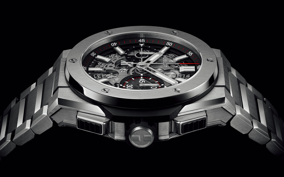 単に新しいブレスレットをケースへ付けたわけではなく、すべてにおいて突き詰めた時計であるという意味を込めて、ウブロはこのモデルに「インテグレーテッド」と名付けたのだ。