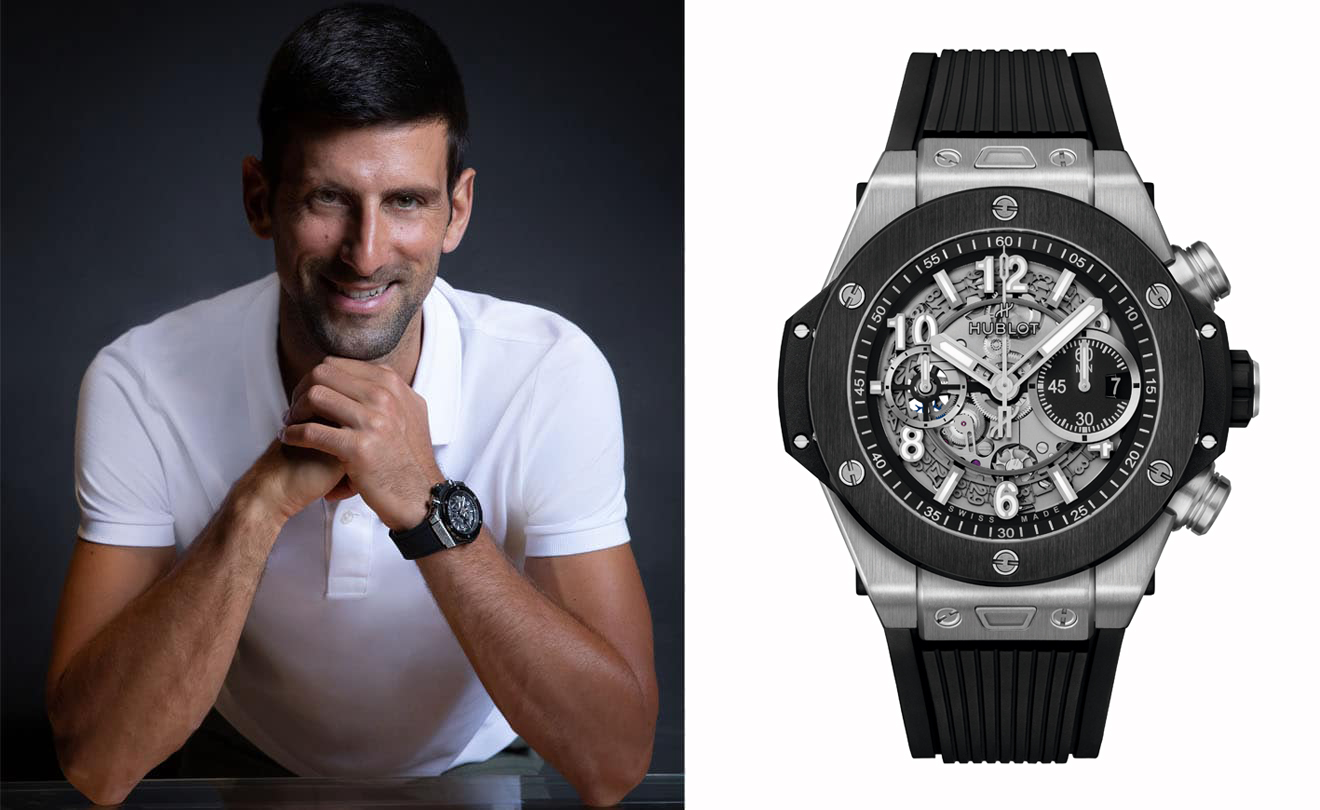 セルビア出身のテニス選手であり、グランドスラムで21回、マスターズ1000の38回を含むATPツアーでシングルス88勝、オリンピックのメダル獲得などを勝ち取ってきたテニスプレーヤー、ノバク・ジョコビッチは2021年からウブロのアンバサダーに就任している。写真では「ビッグ・バン ウニコ チタニウム セラミック」を着用。