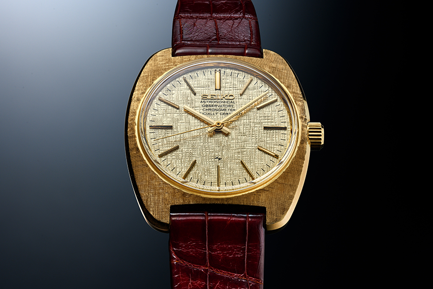 1969年12月25日に発表された「クオーツ アストロン 35SQ」は、標準的な機械式時計の約100倍の精度を誇った。しかもセイコーでは根幹技術を公開することで時計技術を広め、誰もが正確な時計を所有できる時代を作った。クォーツ(Cal.35SQ)。18KYGケース(直径36mm、厚さ11mm)。