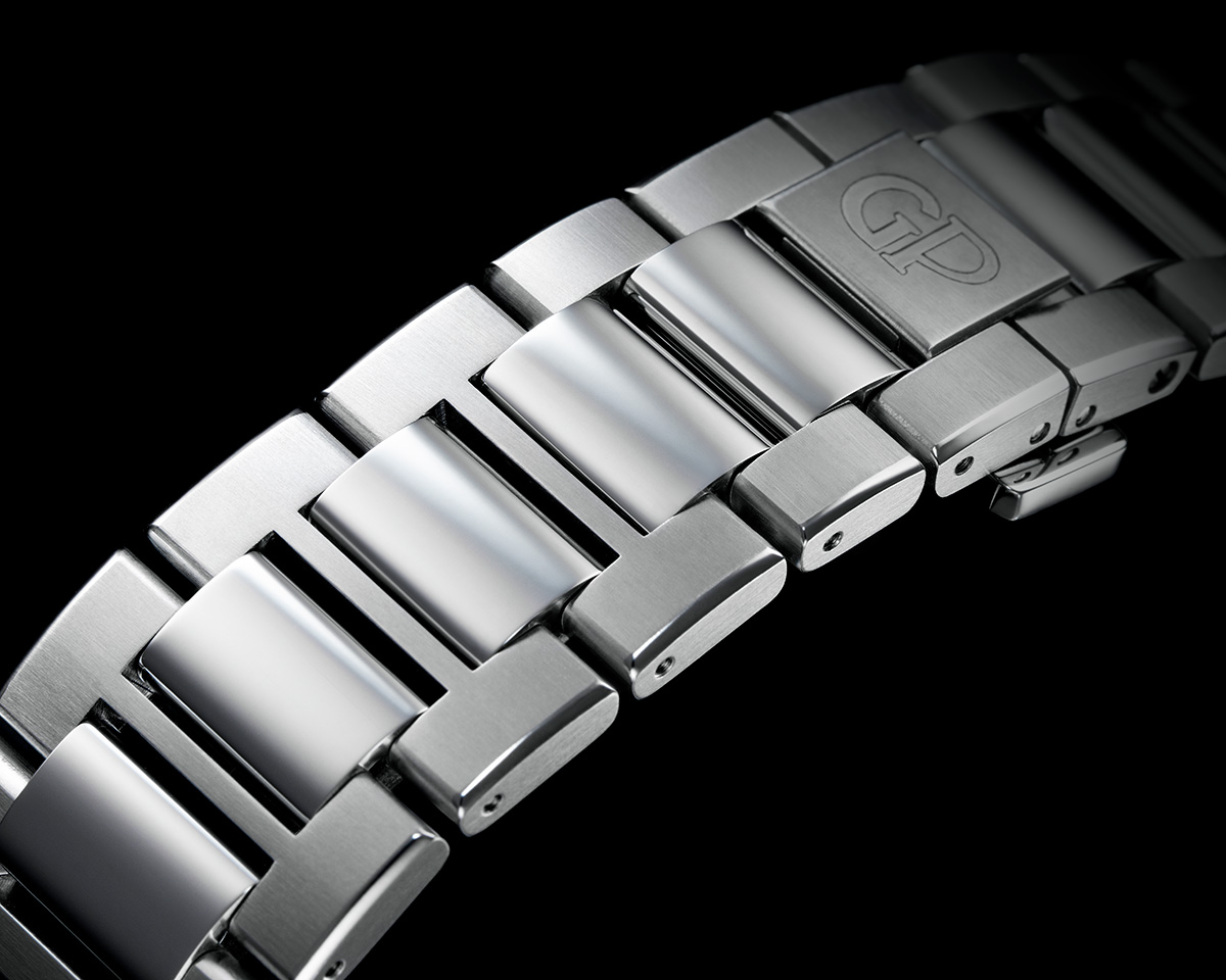 2017年に復活して以来、コレクションを象徴しているケース直径42mmの3針モデル。中でもブルーダイアルは、ラグジュアリースポーツウォッチらしい軽快感と洗練された雰囲気を携え、高い人気を誇る。自動巻き(Cal.GP01800)。28石。2万8800振動/時。パワーリザーブ約54時間。SS(直径42mm、厚さ10.68mm)。100m防水。188万1000円(税込み)。
