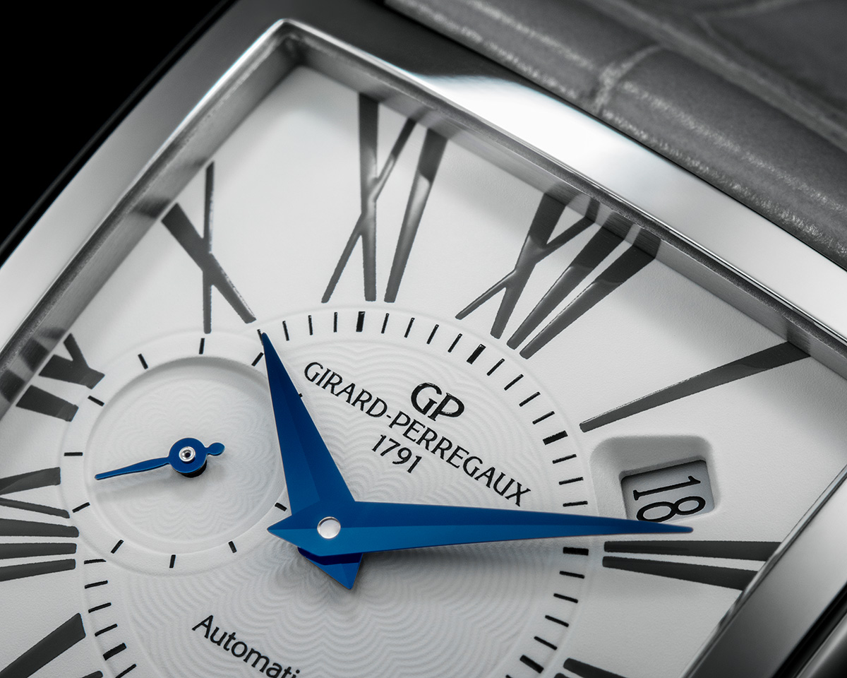 人気の高いグレートーンでまとめ上げただけではなく、ケースも縦33.3×横32.46mmとトレンド感のあるスモールサイズとなっており、シェアウォッチとして男女を問わずに着用できるのも魅力。しかし何より、じっくりと堪能したいのはクリエイションの素晴らしさだ。緩やかなカーブを描くケースが手首に馴染むのはもちろんのこと、湾曲したダイアルの形状に合うよう、ドーフィン型の針も手作業によってカーブが付けられている。ロレアートがジラール・ペルゴの革新性を表すコレクションであるならば、ヴィンテージ1945は、時計の造形美を追求し続けるブランドのアイデンティティーを全面に打ち出したタイムピースと言えるだろう。