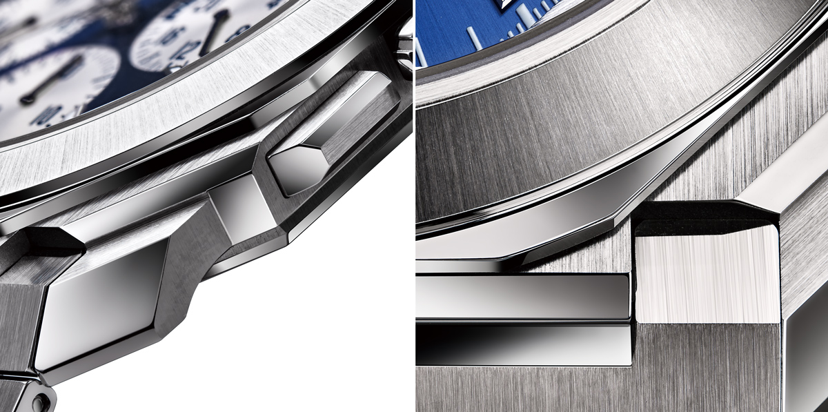 (左)ネジ留め式の裏蓋にもかかわらず100m防水を実現したオクト フィニッシモ クロノグラフ GMTのSSモデル。変形しにくいSS素材に加え、裏蓋の厚みを増すことで、ネジの数が減ったにもかかわらず防水性能は向上している。