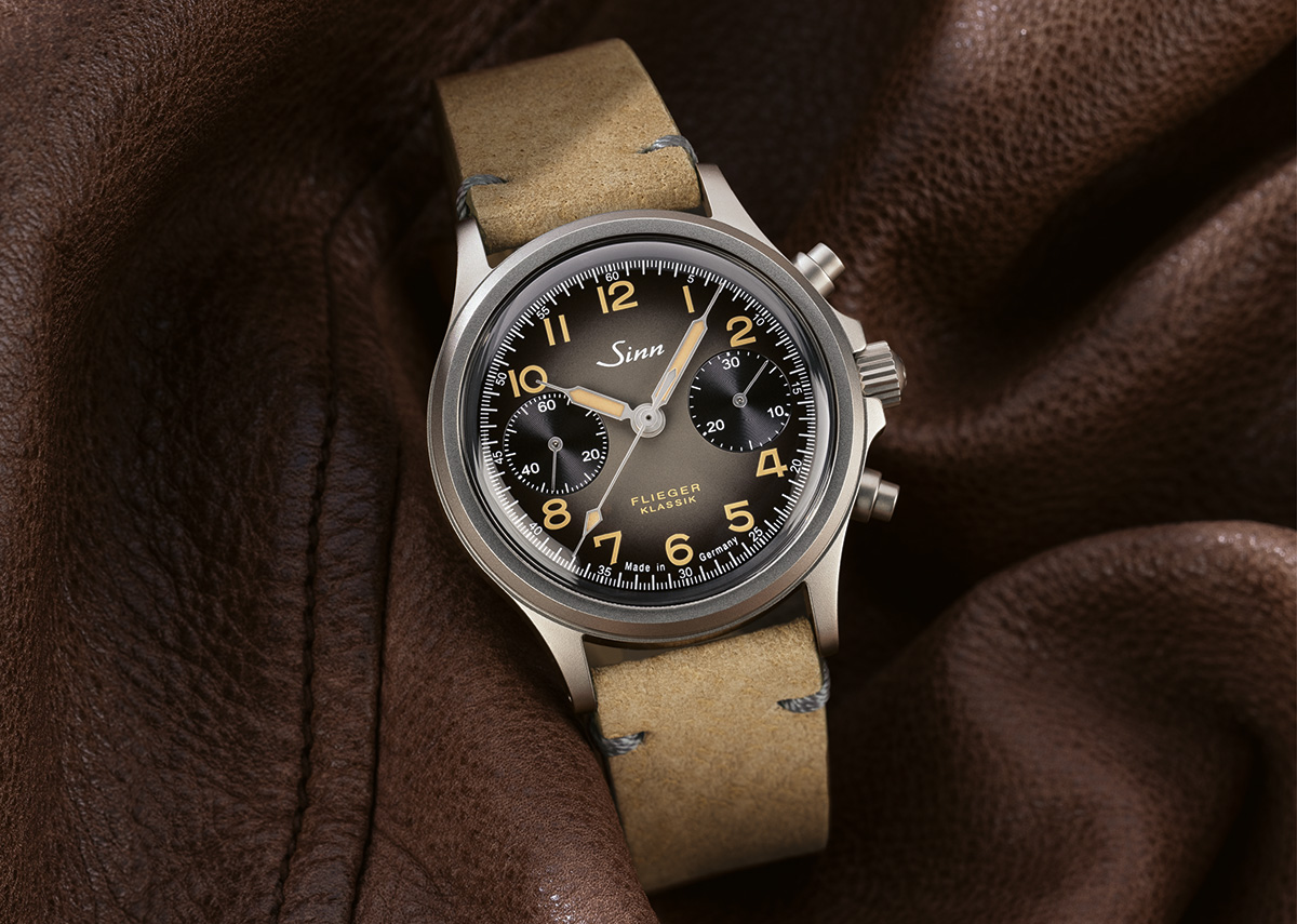 多くの時計愛好家がクラシックなクロノグラフに魅了される理由のひとつとして、歴代クロノグラフウォッチには多くのユニークな特徴を持つことが挙げられる。Sinnの「356フリーガー・クラシックJUB」では初めて文字盤に絶妙な装飾が施されている。文字盤の6時位置には「FLIEGER KLASSIK」の文字をデザインし、さらに対をなすように、12時位置にはアプライド式のSinnのロゴを配している。