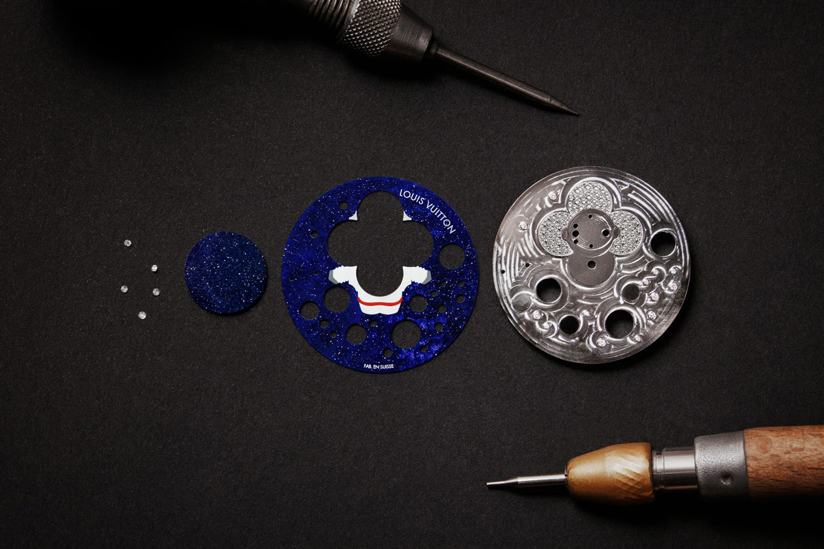 今回登場した2種の新作モデルの製作にあたり、メゾンのアトリエ「ラ・ファブリク・デュ・タン ルイ・ヴィトン」が誇る、比類なき技術が結集。日本の桜と広大な宇宙をヴィヴィエンヌが巡るという、類い稀なダイアルを備えるジャンピングアワーウォッチが作り上げられた。