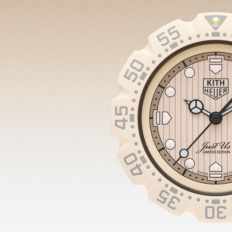 タグ・ホイヤーの輝かしい歴史において、初めてコラボレーションパートナーとロゴを融合させるという画期的な取り組みも行われた。『TAG Heuer | Kith』では、ダイヤル、ラバーストラップ、ケースバックに、「Kith」と「Heuer」を組み合わせたシールドロゴの再構築バージョンが採用されている。また、ダイヤルにはファイグ氏の家族への思いへのオマージュとして、Kith のモットーである「Just Us」も記されている。