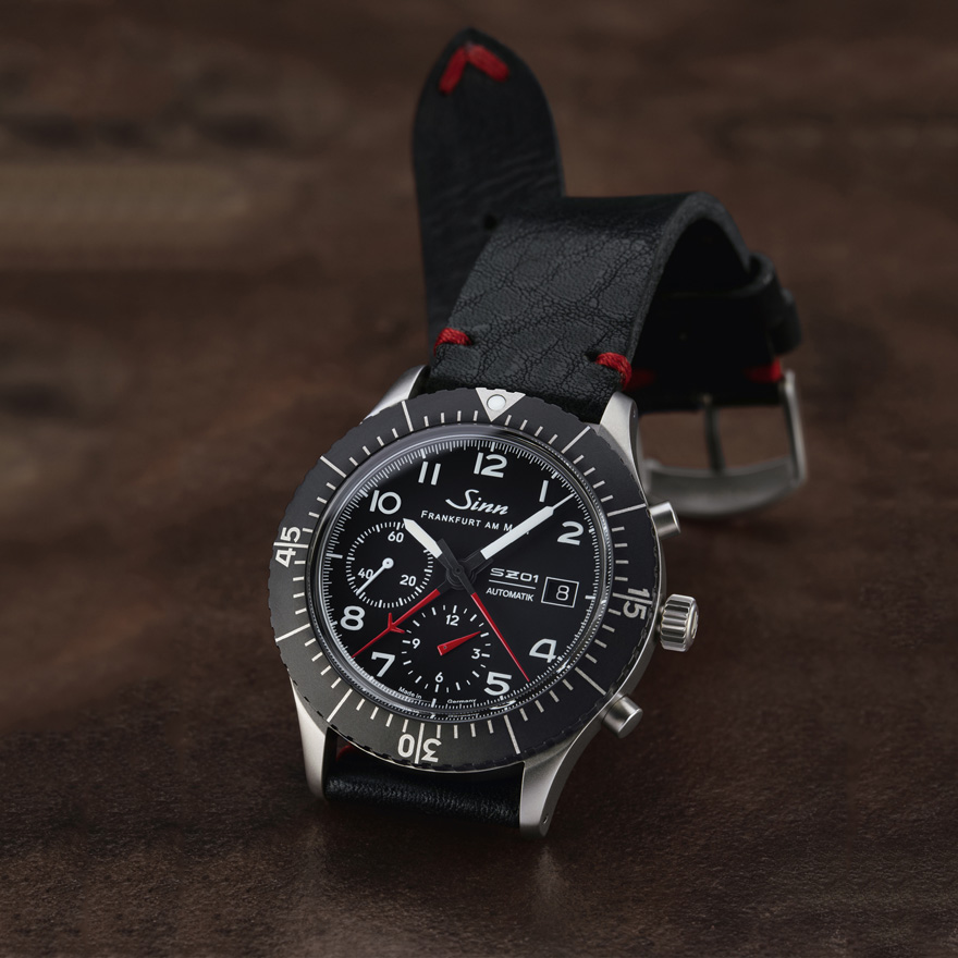 新しい156.1シリーズには、「140.ST」「EZM 10」「EZM 1.1」「717」といったモデルで馴染みのあるジンのインハウス・ムーブメント、Cal.SZ01を搭載、あえて24時間積算計のない、オリジナルのデザインに回帰した。また、曜日表示も省くことで日付がより明瞭になり、高い視認性を保っている。