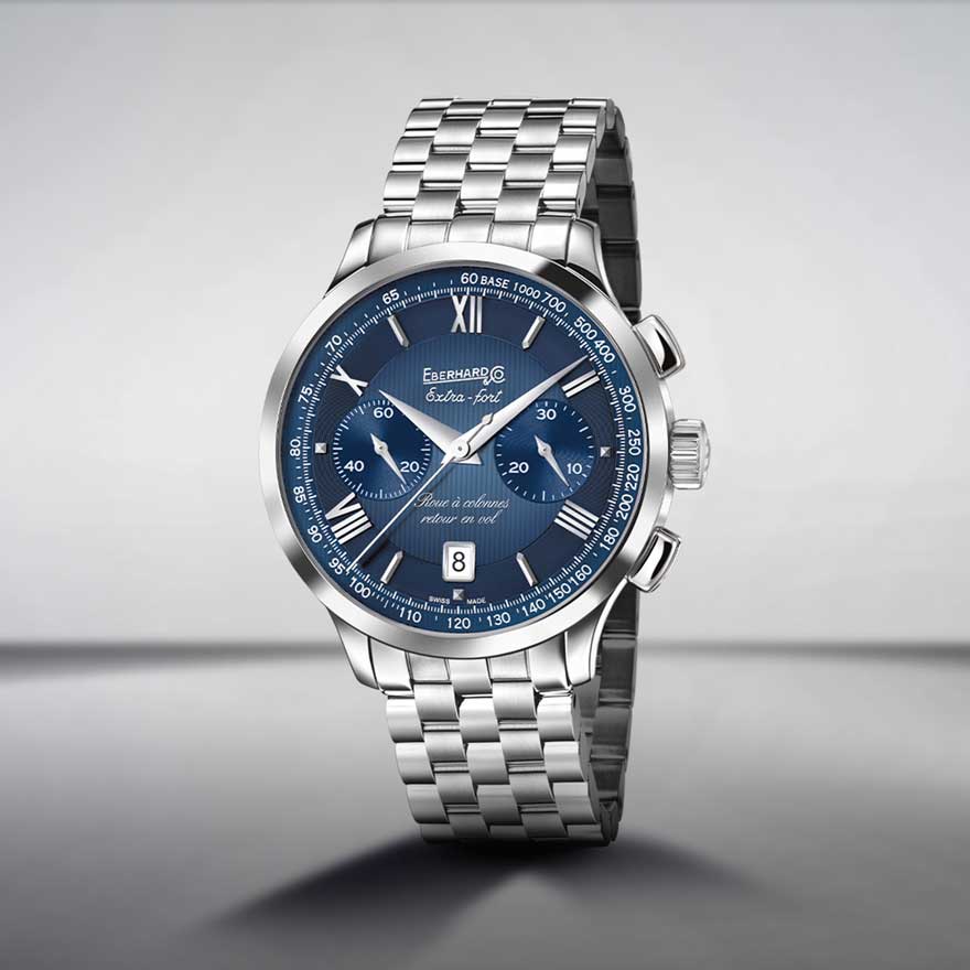 エベラールは、1940年に最初に発売した歴史的な「エクストラ・フォルト」コレクションを独自の進化へと導いた。そう、新しいクロノグラフモデル「エクストラ・フォルト・ルー・ア・コロンヌ・リターン・アン・ヴォル(Extra-fort Roue à Colonnes Retour en Vol)」である。エベラールの歴史の中で積み重ねられたウォッチメイキング、そして美的魅力と現代的なエッセンスを融合したうえで設計された、この革新的なクロノグラフについて紹介しよう。