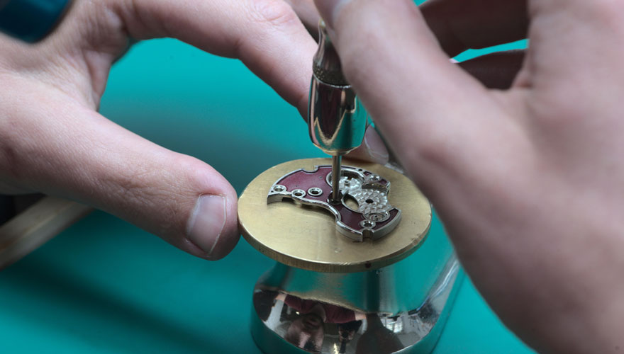 手作業でギョーシェ彫りを施した文字盤は、110 年の歴史を持つ手動操作の機械が生み出す精密さと芸術性を見事に表現している。このように伝統的なクラフトマンシップへのこだわりは、時計ひとつひとつが唯一無二の芸術品であることを保証している証左であろう。