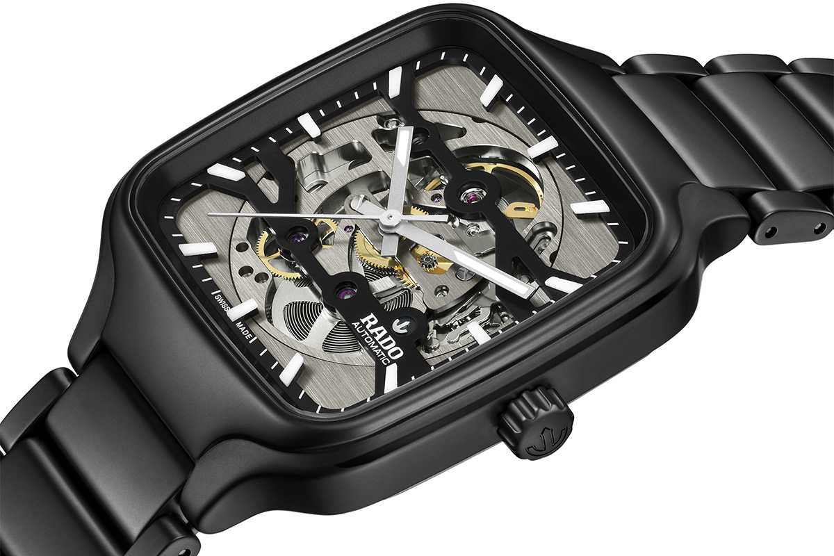 ラドーの「トゥルー スクエア スケルトン」から新作が発表された。セラミックス製でありながら、にぶい金属光沢を放つガンメタルカラーのモデルである。似たデザインのモデルはすでにラインナップされていた。だが、このモデルは前作と比べ、何故か異なる印象を与えるのだ。