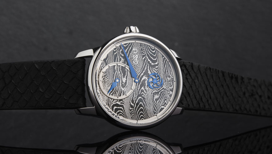 ルイ・エラールは、ダマスカス鋼の芸術を時計製作に取り入れるスウェーデンのユニークピースブランド、「GoS」(ゴース)とのコラボレーションを発表致した。本作は、スウェーデンの GoS による鍛冶技術により生み出されるダマスカス銅の唯一無二な模様が織りなす幻想美とルイ・エラールの精微で洗練された時計製造技術が融合された作品である。