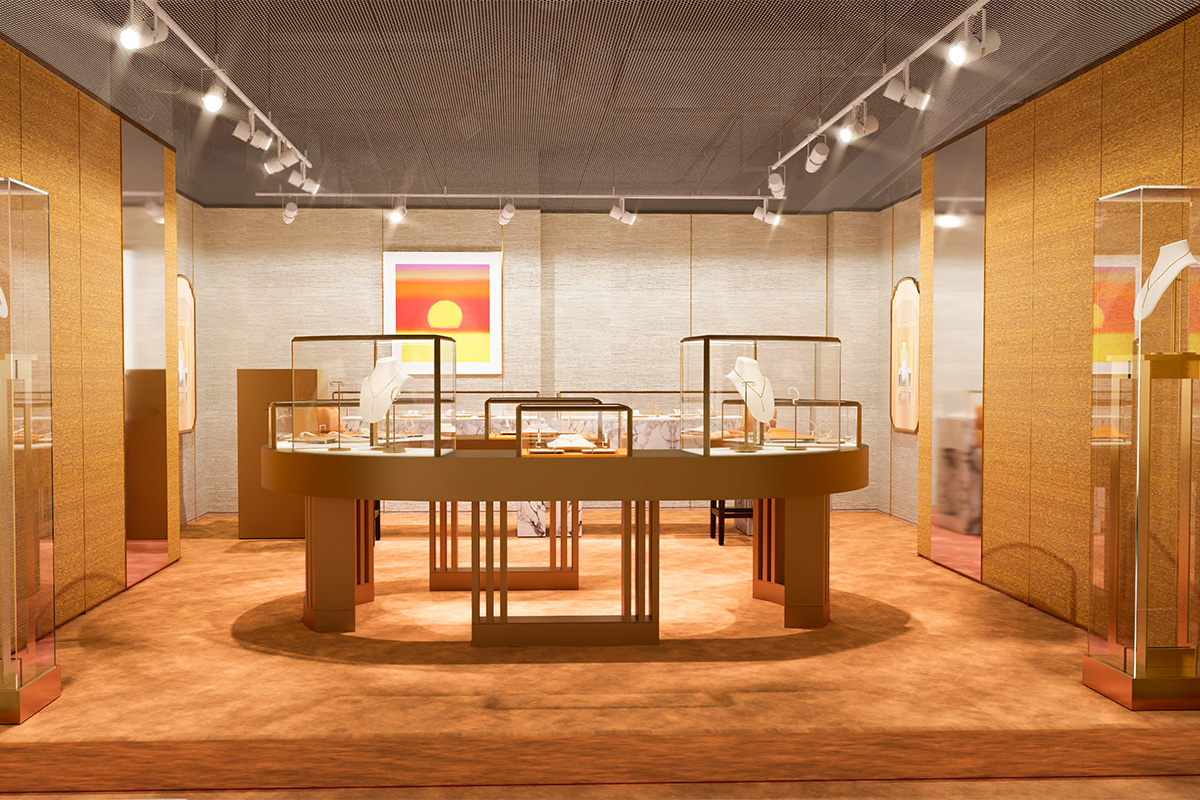 会場では、ジュエリーやウォッチなど、幅広いコレクションを展開。視覚的にも配慮されたディスプレイによって、アイテムの特徴が引き立てられている。