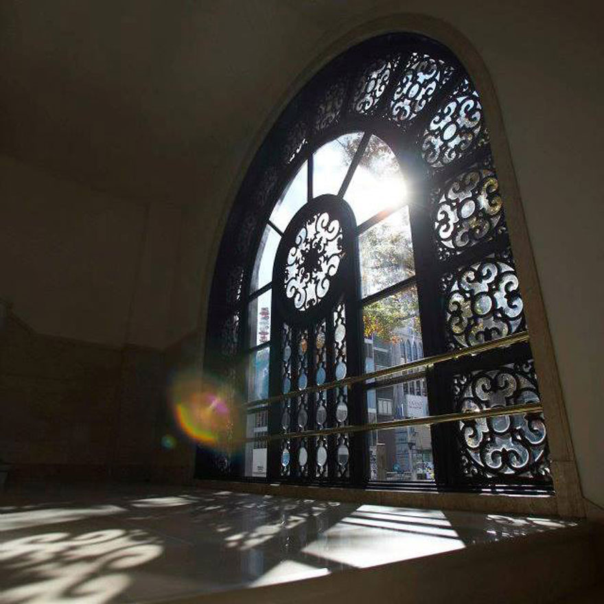 6時位置にはスモールセコンドを配し、そこにも窓から着想を得たパターンが施される。さらに、スモールセコンドの回転軸を中心に文字盤のベースには同心円状の装飾彫りが施されている。緻密な装飾によって波紋が広がるような仕上がりで、アラベスク模様の文字盤の背景として奥行きを生み出す。
