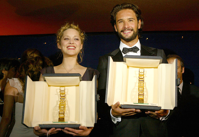 写真1枚目(左)は、2018年のショパール・トロフィーのゴッドマザーに選ばれた女優のダイアン・クルーガーが、2017年にカンヌ国際映画祭女優賞を受賞した際のもの。右はショパール・トロフィー。2枚目(左)は『エディット・ピアフ〜愛の讃歌〜』で2008年にオスカーを手にしたマリオン・コティヤール、3枚目は2013年に『アデル、ブルーは熱い色』でパルム・ドールを受賞したレア・セドゥ。