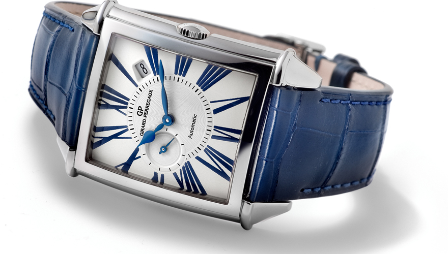 ジラール・ペルゴは、角型のケースに収められたホワイトダイヤルにブルーの針と、藍色のローマンインデックスが映える「ヴィンテージ1945 ジャパンブルー限定モデル」を日本市場のみ100本限定で7月より順次発売する。