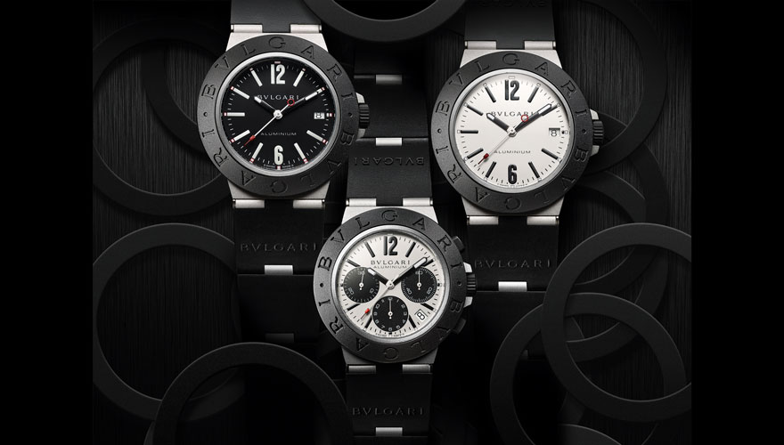 白黒デザインの時計は、現代的なヴィジョンと調和した洗練さとスポーティさのあるタイムピースである。本モデルは、ラグジュアリーとスポーツウォッチの概念を再解釈した。ブルガリは、プレシャスな貴金属やジェムストーン、 ジュエリーの創造力の高さなどで知られる一方で、新作の「ブルガリ アルミニウム」は、純粋なラインと印象的なグラフィックデザインによって表現されたクールな印象とスタイルに焦点を当てた驚きがある。