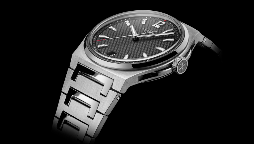 自動巻き(Cal.SXH5)。28石。2万8800振動/時。マイクロローターはリサイクルされたプラチナ950製。SS(直径40.5mm、厚さ10.6mm)。パワーリザーブ約56時間。120m防水。250万円(税別予価)。簡単に交換できる、カーフまたはラバーストラップが付属