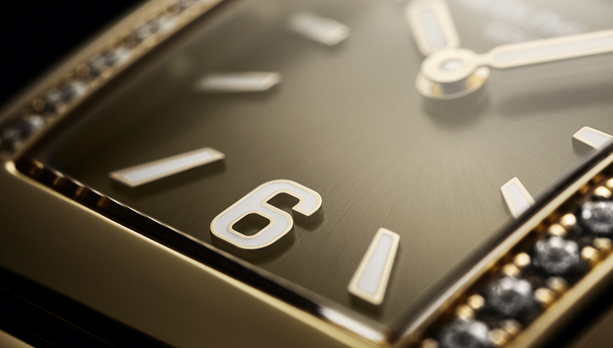 ピュアなデザインの文字盤は、すべて夜光付ローズゴールドの植字アラビア数字とトラペーズインデックス、および丸みを帯びたバトン型時・分針を配している。リュウズは、パテック フィリップのエンブレムであるカラトラバ十字で装飾されている。折り畳み式バックルを備えたローズゴールド・ブレスレットは、それ自体がジュエリーということができるほど、完璧にポリッシュ仕上げされ、手首に滑らかで心地よい感触を与える。パテック フィリップのキャリバーE15 クォーツ・ムーブメントの機械式構成部品は、機械式ムーブメントのものと同じ卓越したクラフトマンシップにより製作されている。新しいTwenty~4 マンシェット4910/1201R-001モデルは、SSのブルー・ソレイユ文字盤(4910/1200A-001モデル)またはグレー・ソレイユ文字盤(4910/1200A-010モデル)、ふたつの現行モデルに加わる新作だ。