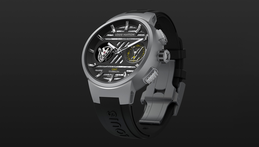 ルイ・ヴィトンは、「タンブール カーブ GMT フライング トゥールビヨン」に、メゾンのハイウォッチ コレクションのシグネチャーとなる革新的でグラフィカルなデザインを加えることによって、「旅」を極めたこのコンプリケーションウォッチを、新たな地平線を切り拓く挑戦者と位置付けた。