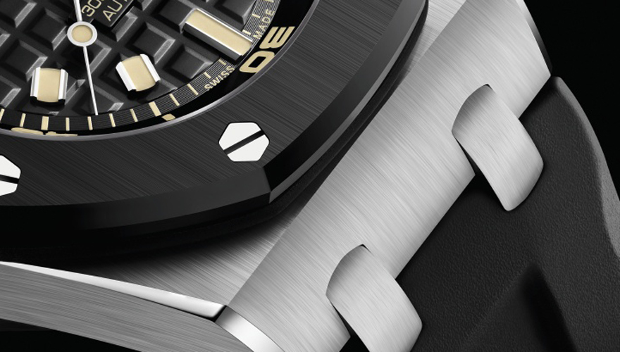 ウォッチにはアウトドアの冒険にふさわしいブラックの交換可能ラバーストラップがついており、さらに交換可能なベージュのカーフスキンストラップが追加で付属。洗練されたリラックスタイムを楽しむことができる。ロイヤル オーク オフショア ダイバー コレクション2021年ラインは、カーキ、ブルー、グレーのラバーストラップの他にドライな日常での冒険にも適したにブラウンとブラックの二つのカーフスキンレザーストラップでも含まれる。