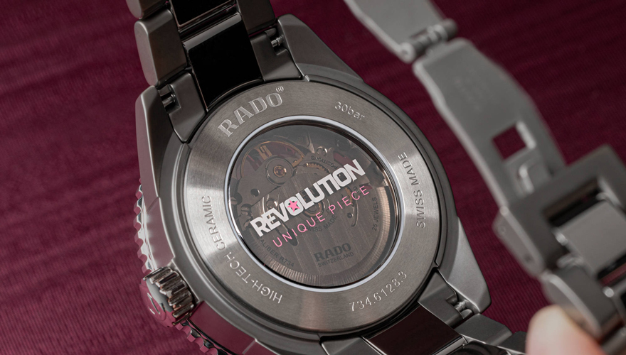 ケースバックにも特別な装飾が施され、主催者である「REVOLUTION」のロゴと「UNIQUE PIECE(1点もの)」という文字が刻まれる。
