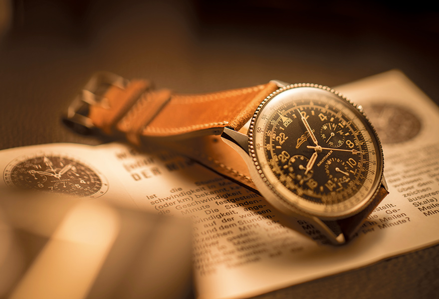 ウィリー・ブライトリングがデザインしたのは、平均速度、移動距離、燃料消費量、上昇率など、パイロットが進歩的な飛行管理計算を行うことができる画期的なものだった。この“オンボードコンピューター”とも称される計器は、ブライトリングが特許を取得した円形計算尺を時計の回転ベゼルに組み込むことで実現した。