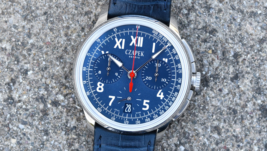 パープル・パンダは、独占登録された「レゾナンス」ギョーシェ・パターンが、クロノグラフの30分、12時間積算カウンターのホワイトとは対照的に、格調高く鮮やかなパープルの色を帯びている。一方のカリフォルニア・ブルーは、グレイン仕上げ、深くて濃いブルーで、フォーブル・ド・クラコヴィ「カリフォルニア・ドリーミン」で採用された、上半分のインデックスがローマ数字、下半分はアラビア数字であるカリフォルニア・スタイルのダイアルを備えている。ちなみに、このカリフォルニア・ドリーミンは、チャペックの名前を再興するための初期資金を調達するために製作された、ブランド最初期の時計にインスピレーションを得たものだ。