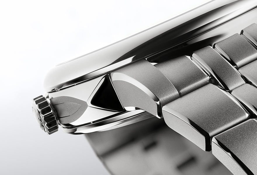 チタンはステンレススティールよりも約43%軽量であるため、既に評価を集めている装着感は、さらに高くなっていることが期待できる。またチタンの表面は、光沢仕上げ、マット仕上げ、ブラシ仕上げが使い分けられており、光の反射によってさまざまな表情を持つものとなっている。