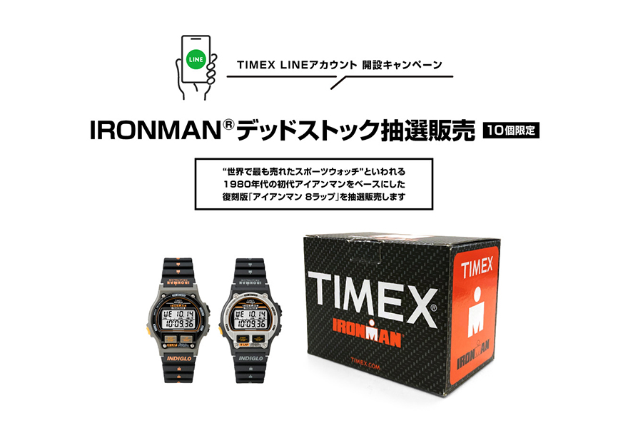 タイメックスは、ブランドを代表する名作のひとつで、現在は生産終了のため入手困難となっているモデル「アイアンマン® 8ラップ」の復刻版のデッドストックを抽選販売を実施する。これは、タイメックスが公式LINEアカウントを開設した記念として行われるキャンペーンだ。