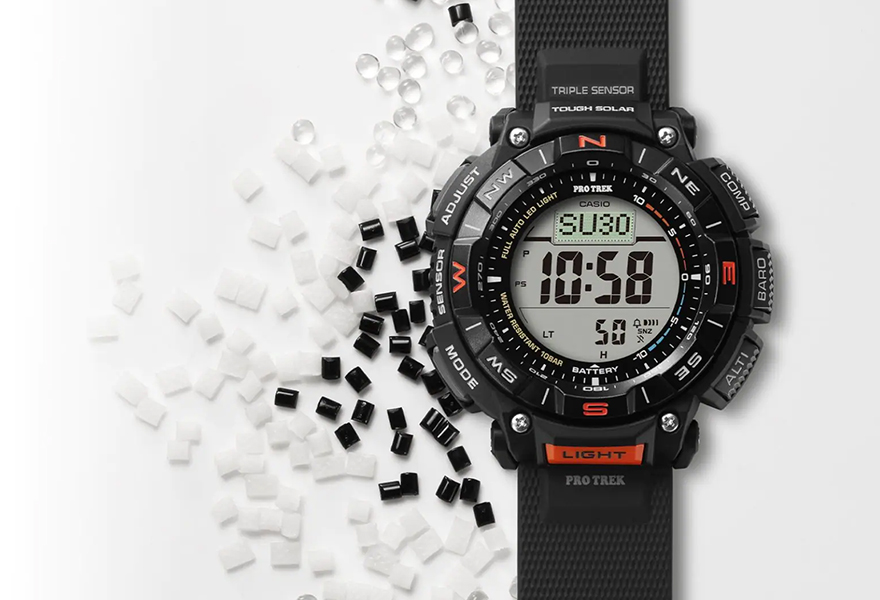 カシオの高性能アウトドアウオッチ、プロ トレックの新作として、外装部品に植物由来のバイオマスプラスティックを使用した新作「PRG-340」が登場。高い視認性を実現する2層液晶を搭載することで、実用性も向上した。
