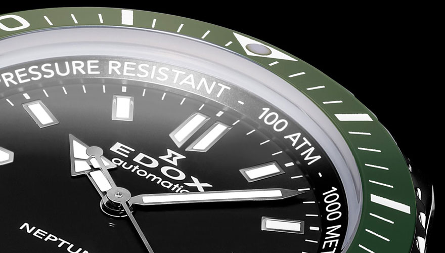 エドックスは、精鋭パラシュート部隊のために製造したアーカイブピースを、プロ仕様の高性能な造りとスタイリッシュなデザインで現代風に再解釈した「スカイダイバー ネプチュニアン オートマティック」を2021年に発表。スカイダイバー コレクション初となる飽和潜水1000m防水を実現した。逆回転防止セラミックベゼルと、3mmの厚さを持つサファイアクリスタルで時計の表面を保護。ムーブメントは、高精度なスイス製EDOXキャリバー80を搭載した。