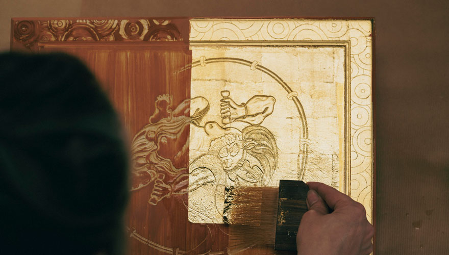 ルーヴル美術館の金箔職人が作る四曲屏風