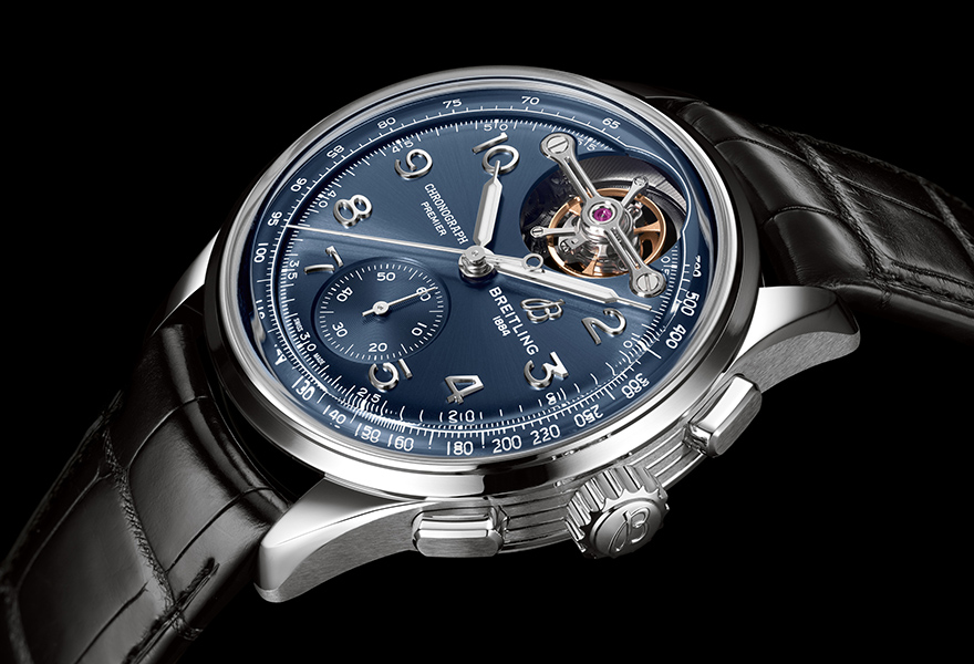 トゥールビヨンは、バランスホイール(テンワ)とヒゲゼンマイ、脱進機を回転ゲージに格納し、全体を永久に動かし続ける。これにより、位置によって時計の精度を左右する重力の影響を補正し、効果的に打ち消す。ブライトリングは、特別なムーブメントを製造するマニュファクチュール・ラ・ジュー・ペレ社と協働で、新作に搭載するキャリバーB21を開発した。トゥールビヨンとクロノグラフを組み合わせるという珍しい手段をとり、ブライトリングの特徴を明確に備えたこの3モデルの時計を生み出した。