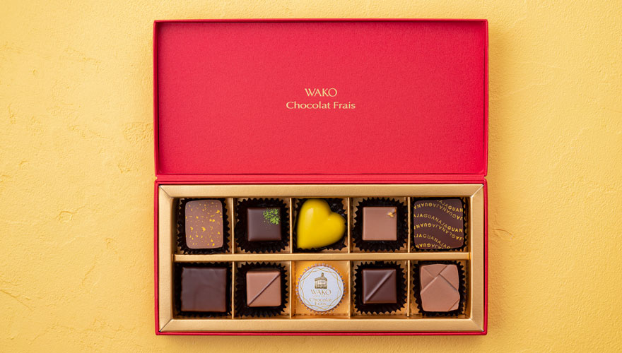 都内の自社アトリエで一粒ずつハンドメードしているのが、人気のショコラ・フレ(生チョコレート)。1988 年から30 年以上にも渡り守られてきた和光歴代のショコラティエの伝統の製法・レシピを、5 代目シェフ ショコラティエの小熊亮平が引継ぎつつ、新しい時代のエッセンスを取り入れてチョコレートを開発している。