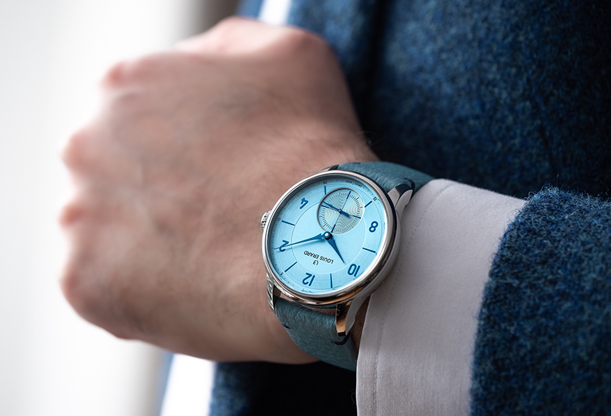 ルイ・エラールで注目されるコレクション、エクセレンス スモールセコンドの3本の新モデルが加わった。クラシックとモダンが交差するデザインに、鮮やかな3色が気品を添える。