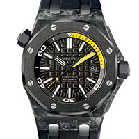 Sugawara’s 1st Selection オーデマ ピゲ / 「オーデマ ピゲ ロイヤル オーク オフショア・ダイバー フォージドカーボン」Photo:「ロイヤル オーク オフショア・ダイバー フォージドカーボン」。自動巻き。フォージドカーボン。生産終了。問オーデマ ピゲ ジャパン Tel.03-6830-0000 ●フォージドカーボン素材なら、おそらく温泉にも耐えるであろうし、300m防水の本格ダイバーズ仕様も心強い。そこまで潜ることはありえないとしても……。 |