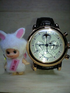 GOのパノグラフは、積算計が読み取りづらく(老眼が進んだからでしょうか)、フランクのヴィーナスクロノは、赤の数字が何となく気に入らないので、手放す事に迷いは無かったんですが、スプリットDフェイスと永久カレンダーは、私にとっては、何の問題も無い時計です。