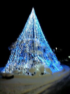 例の方が、スッキリしない顔をしておりましたので、帰り際に、松の木の雪囲いをライトで飾ったものがある、こちらの大学に案内してきました。