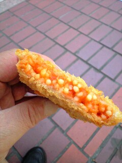 14時を過ぎ、お腹も空いたので、ちょっとした腹塞ぎに、デパ地下で見つけた「ナホリタンコロッケ」を買い、通りに置いてあったベンチに座って、パクパク・・・。