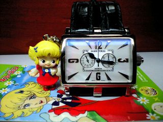 昨日のブログで、さらっとだけ出しました、ロジェのゴールデンスクエア・クロノ(34×34ミリ)の青色の白蝶貝文字盤です。