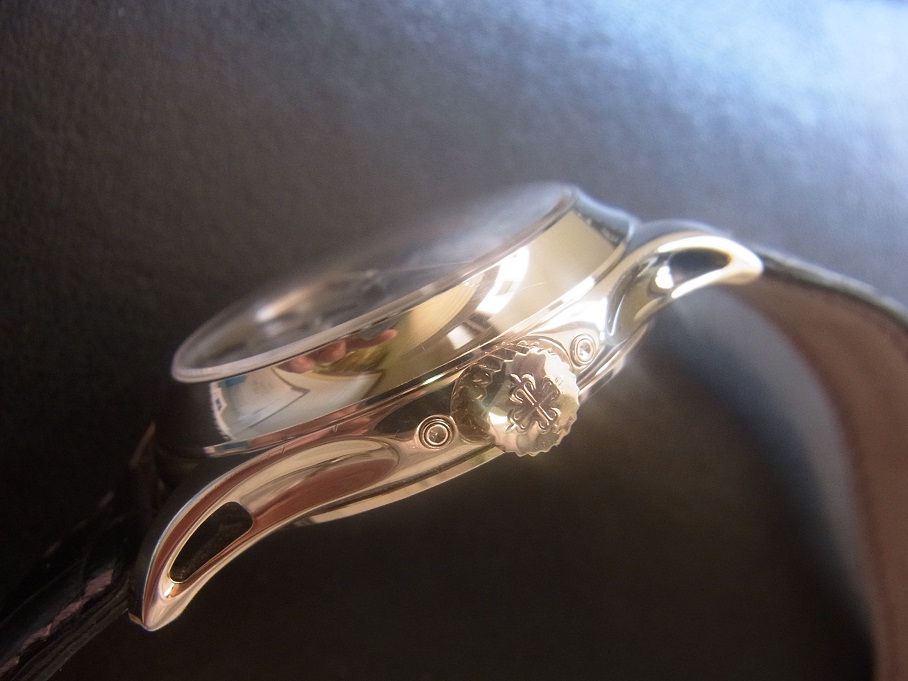 パテックの古典的な逆テーパーベゼルは陰影が美しく、