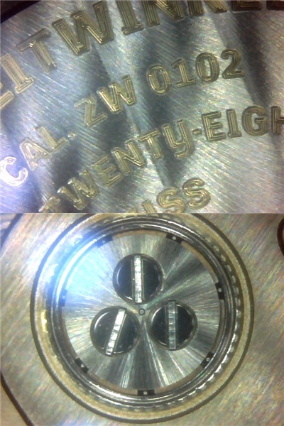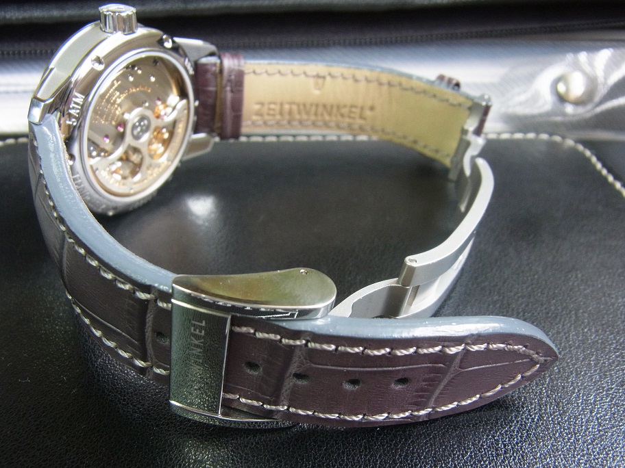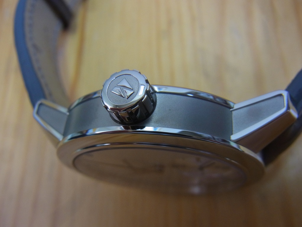 竜頭は直径約6.5mmで巻きやすく、ツァイトヴィンケルのサイン入り。