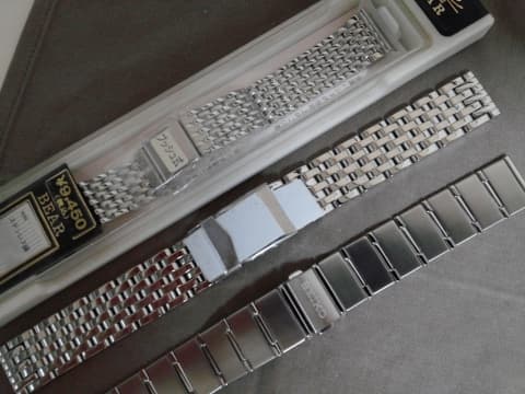 44GS用にラグ幅18mmの7連無垢ブレス、9連無垢ブレス、そして海外のサイトで見つけたほぼ未使用のSEIKOビンテージブレスを購入。