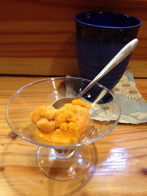 まず、「エゾバフンウニ」をお刺身で頂きます。