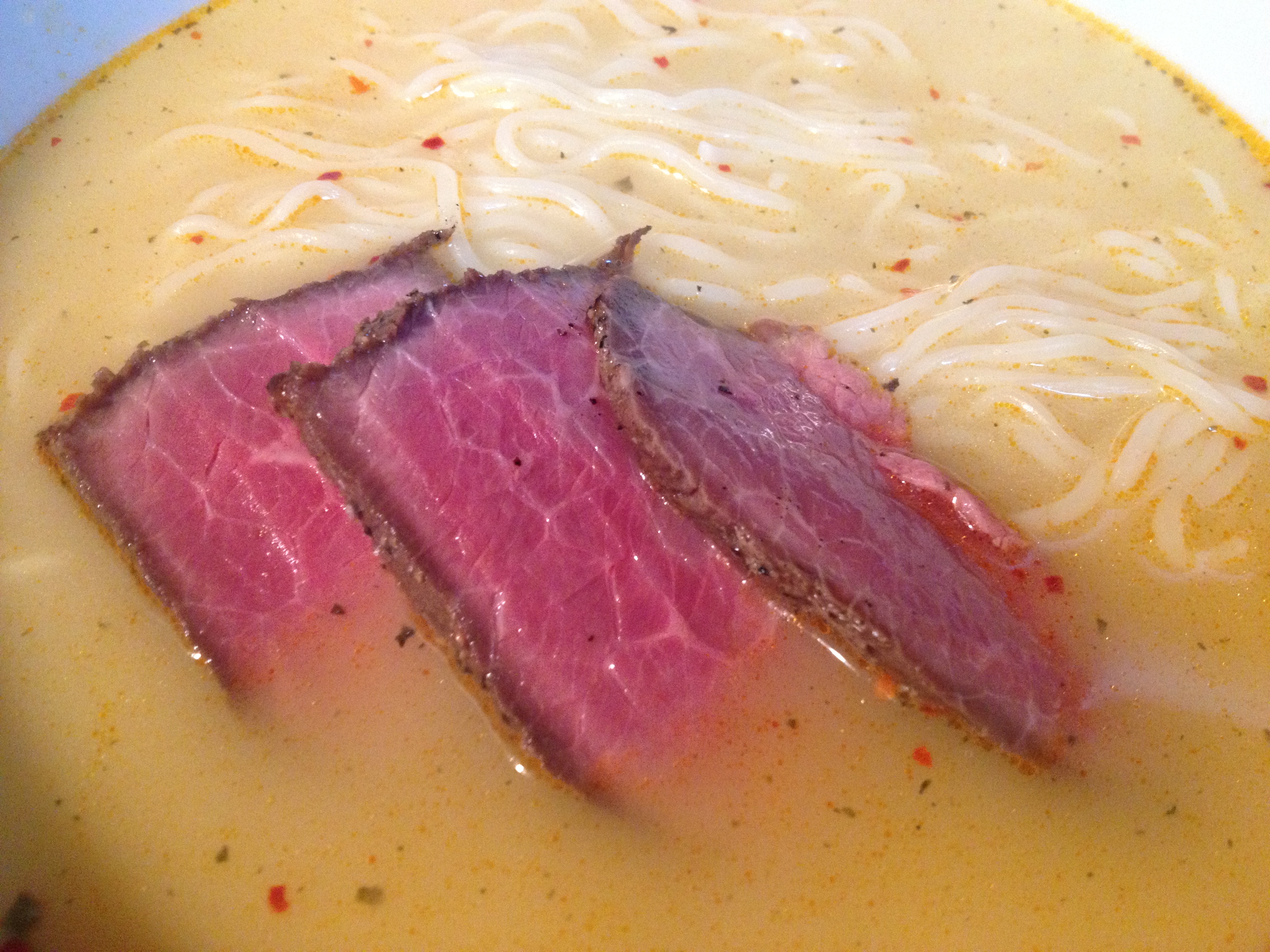 チャーシューもネギも無かったので、頂きもののローストビーフを載せて頂きました。