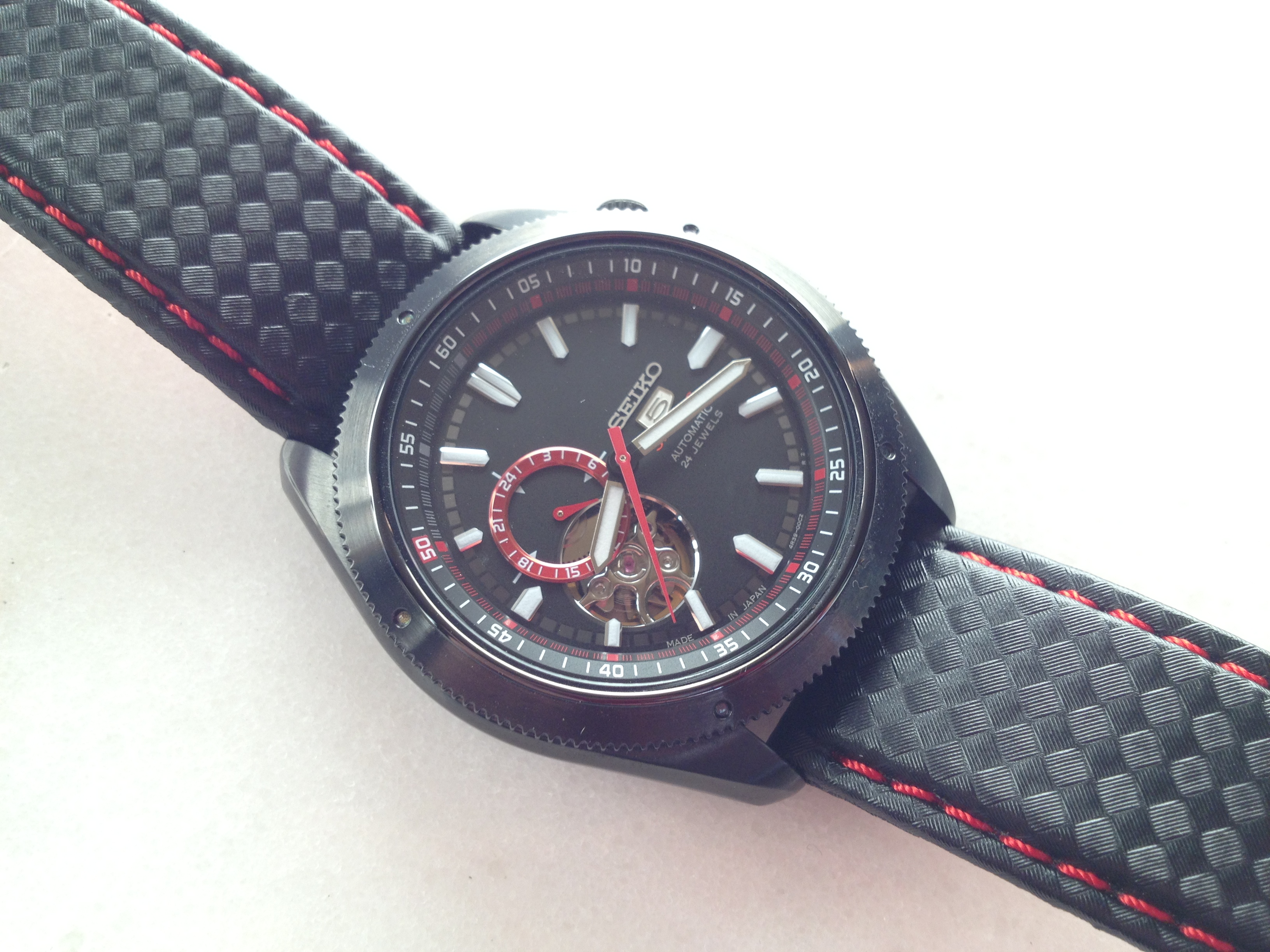 ブラックに赤が差し色になっているので、ストラップを替えて遊んでいます。
