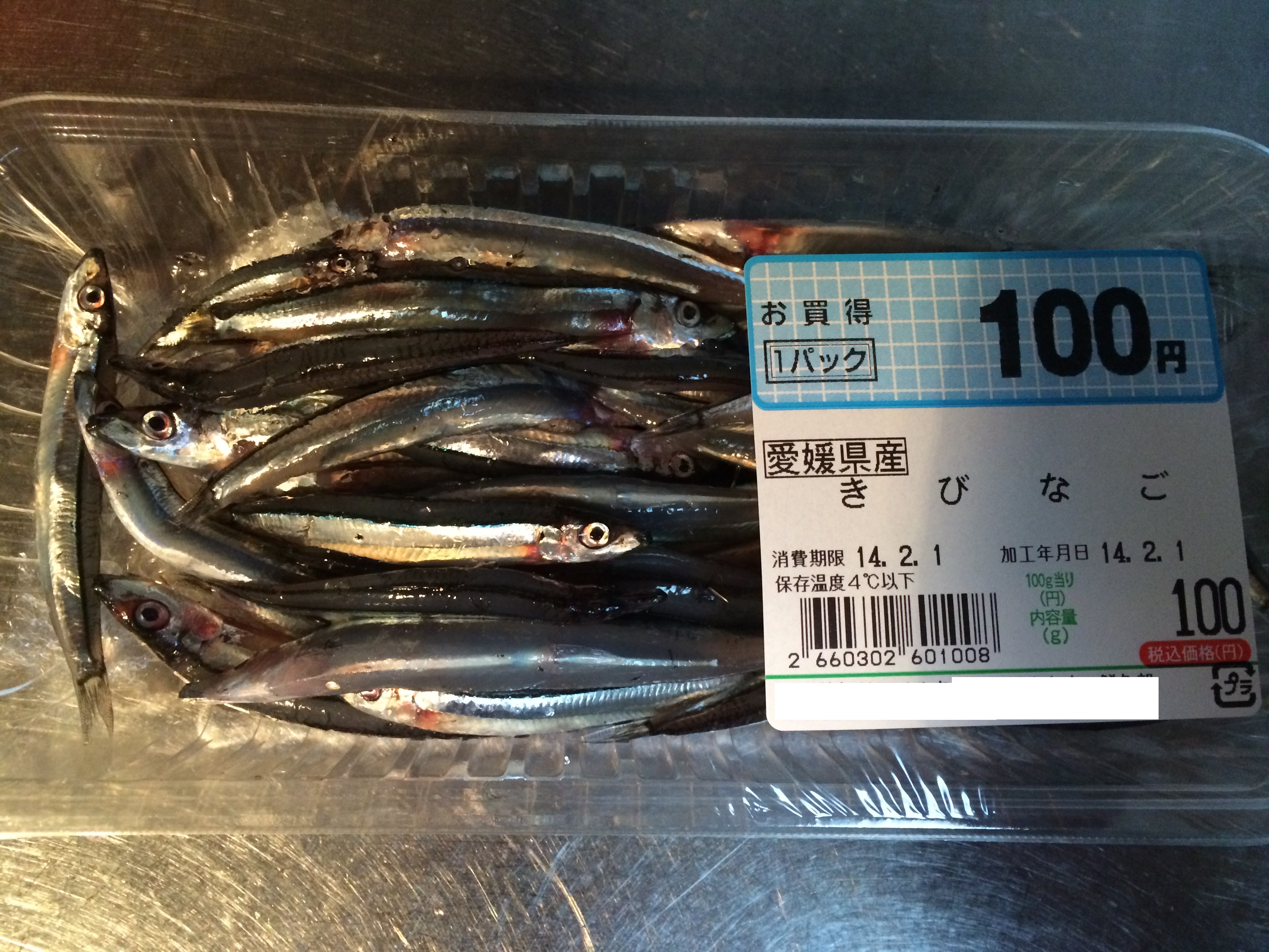 地元のスーパーで「丸のまま」の吉備女子(キビナゴ)を見付けました。