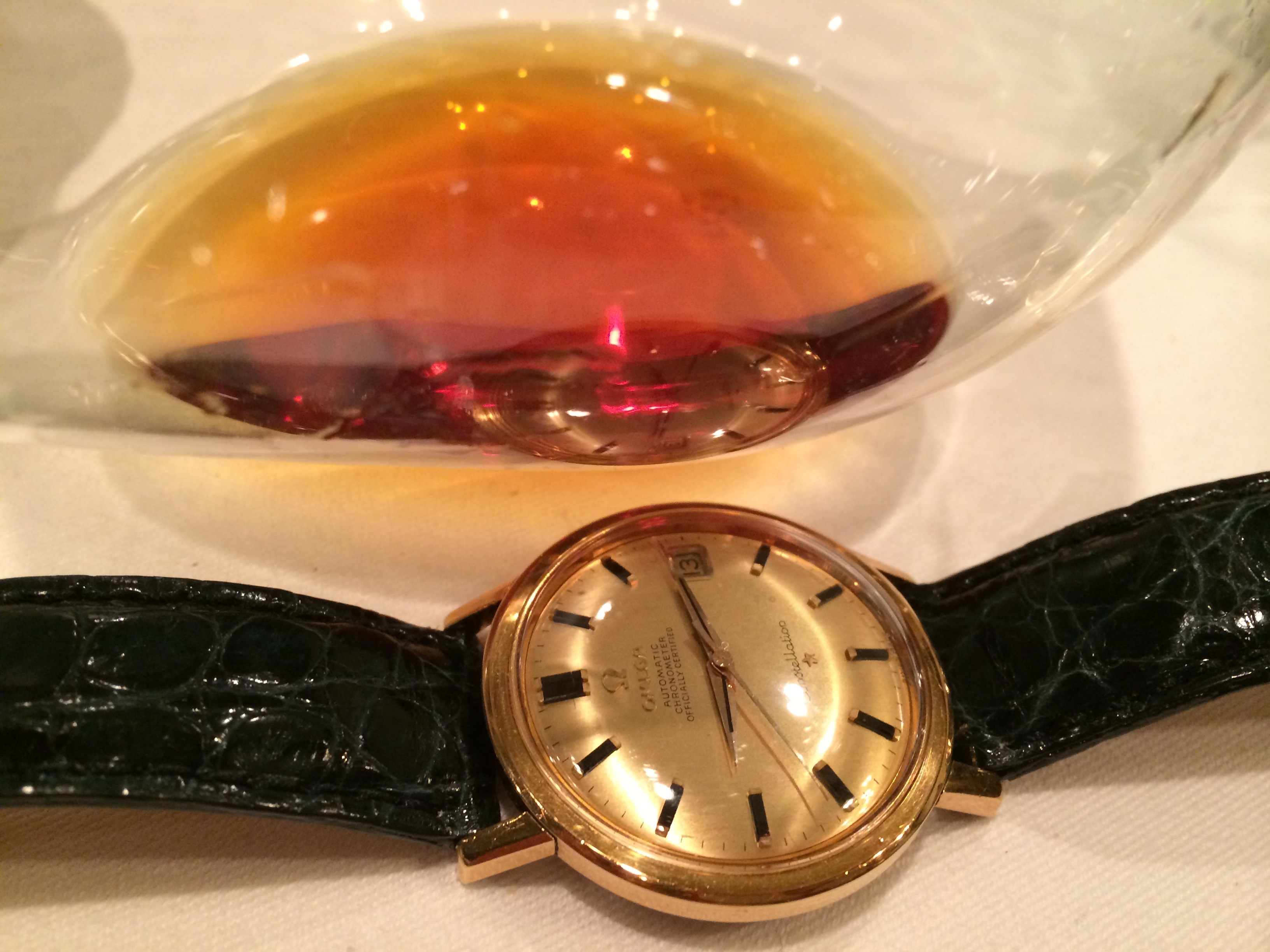 琥珀色になってます。お供の金ダイアル コンステよりも 恋色 濃い色でした ^^)