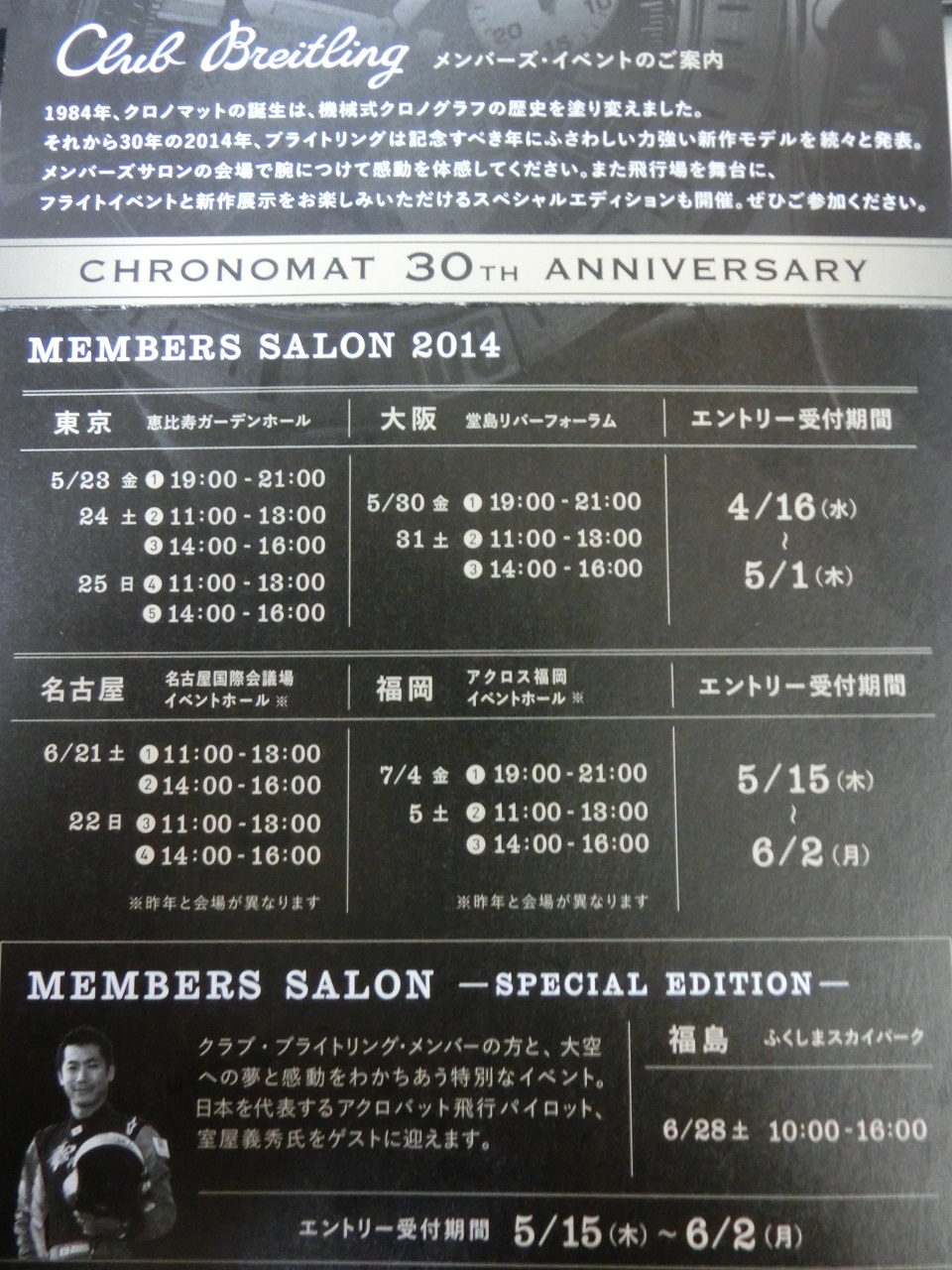 毎年恒例となったブライトリングサロンの案内が届きました。